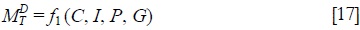 where: ∂f1/∂C > 0, ∂f1/∂I > 0, ∂f1/∂P > 0 and ∂f1/∂G > 0.