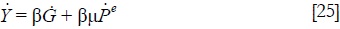 Therefore, equation [14] shows that output is directly affected by price expectations. In other words, it reveals that in the case of deflationary expectations, aggregate real income will decrease in time.