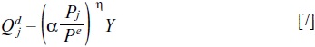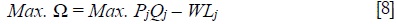 Substituting [7] and [1] in [8], the profit maximization is in relation to Qj. Thus, [8] becomes: