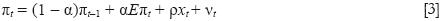 The typical approach to flexible inflation targeting is to assume that 1 > λ > 0 and that the structure of the economy is subject to market imperfections (i.e., rigidities) so that a Phillips curve and an aggregate demand curve can capture the linear structure of the economy.14 The specification for an open economy of the Phillips and the aggregate demand curve here adopted follows that of the new Keynesians as both depend on future values of inflation and output gap.15 That is,