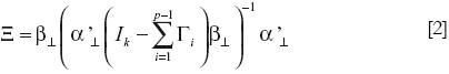 Sea la forma general de un modelo de VEC, de dimensión p: