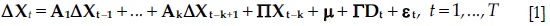 La dinámica de corto plazo que pone en evidencia los mecanismos de ajuste de las distintas variables hacia el equilibrio de largo plazo se expresa a través de las matrices Ai de la ecuación [1].