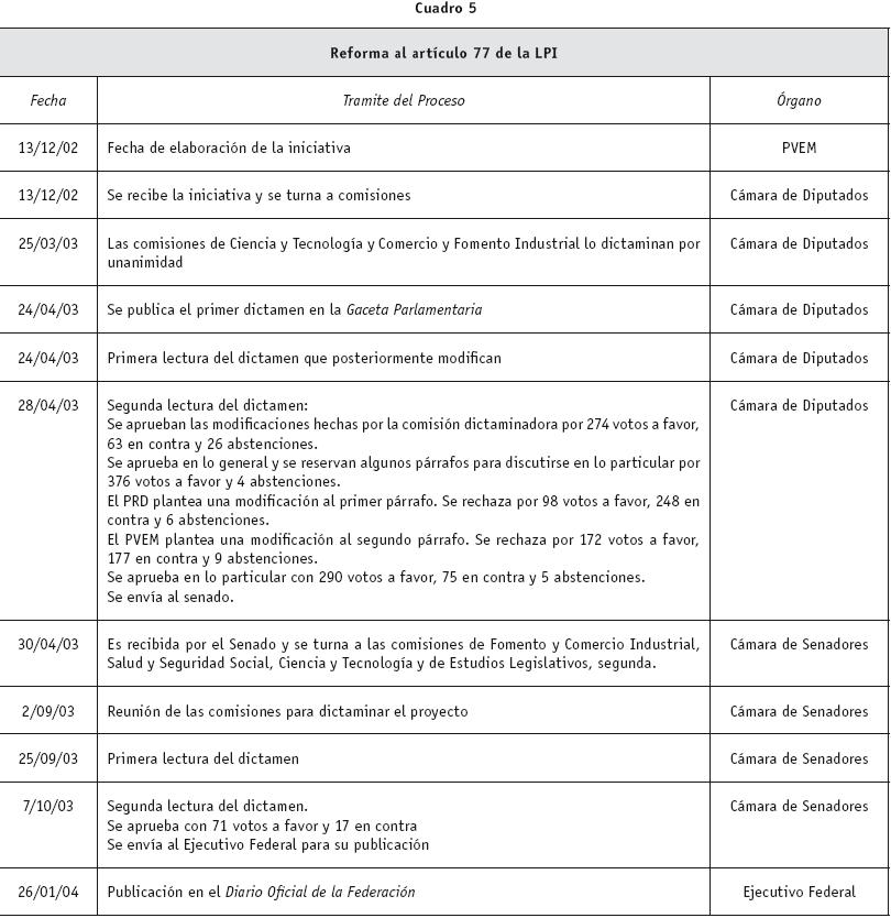 Vid. "Ley de Propiedad Industrial", en Diario de los Debates de la Cámara de Diputados. LVIII Legislatura, Segundo periodo de sesiones ordinarias del tercer año de ejercicio, año III, sesión 15, volumen II, 24 de abril del 2003, p. 155276.