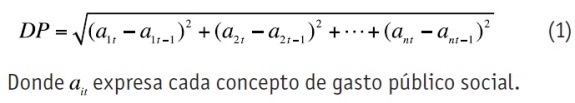 De manera similar a lo que proponen Tsebelis y Chang,35 la variable dependiente es la "distancia presupuestaria" (DP), definida como la diferencia, en términos positivos, del valor de los diferentes ítems del gasto público social y el valor que tomó ese mismo ítem en el período previo. Para sintetizar los diferentes ítems de gasto social en un indicador, se propone: