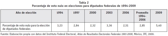 62Instituto Federal Electoral, "Documento de divulgación del análisis descriptivo sobre las características de los votos nulos y votos por candidatos no registrados emitidos en las elecciones federales de 2009", México, IFE, 2010, en http://www.ife.org.mx/docs/ife-v2/CDD/CDD-2010/docs/2doenvio/doc_votonulo2010.pdf.