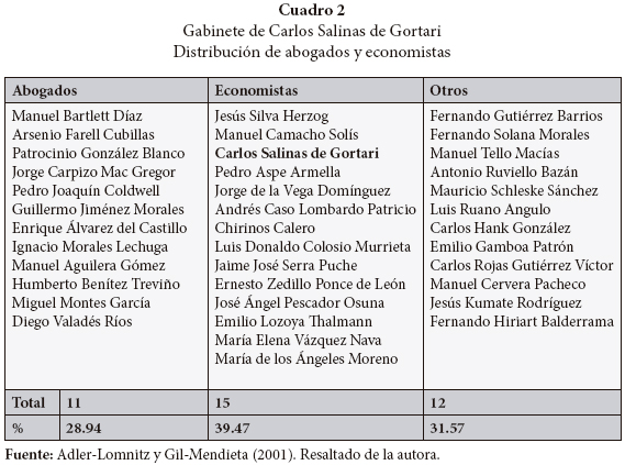 Con De la Madrid y Salinas se establece una élite tecnócrata con un perfil ligado a su amplia propuesta de Reforma del Estado, con el consecuente cambio en el modelo económico e indiscutible apertura comercial, aspectos que consolidó Ernesto Zedillo durante su gobierno. Destaca pues que los últimos tres presidentes previos a la alternancia: