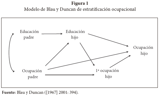 Esta segunda vertiente analítica surgió a finales de la década de 1960 a partir del trabajo de Blau y Duncan, quienes plantearon un modelo explicativo del proceso de estratificación. El modelo se sustenta teóricamente sobre la hipótesis liberal que postulaba que el mérito sustituiría progresivamente al origen socioeconómico como determinante central de la estratificación en las sociedades modernas. Es decir, este eje de análisis se insertó en el debate central de los estudios clásicos de movilidad sobre el peso relativo de los factores adscritos (los rasgos definidos por nacimiento) y los no adscritos (o meritocráticos) en la determinación del destino social de los individuos.