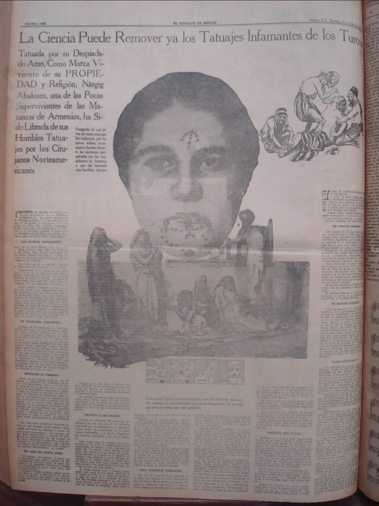 Entre los grupos de sobrevivientes debemos contar, también, a las mujeres que se dedicaron a la prostitución. El elevado número de viudas cuyos familiares habían sido exterminados, así como el creciente número de mujeres que eran cabezas de familia generó que muchas de ellas tuvieran que recurrir a la prostitución para sobrevivir y sostener a sus familias; según un estudio, en el año 1919 de las 140 prostitutas en Mosul 100 eran armenias (Tachjian, 2009 citado en Ümit Üngör, 2015: 84). El estigma social que estas mujeres cargaban era imposible de superar, aunado a que sus clientes habían sido, de hecho, los asesinos de sus familias. En ocasiones, algunas de las mujeres que habían sido raptadas durante la deportación fueron rescatadas de los harenes en que se encontraban,33 y al ser reintegradas a los campos de refugiados armenios en Siria o Líbano, recibían un nuevo rechazo, ahora por venir tatuadas con los símbolos de sus raptores.