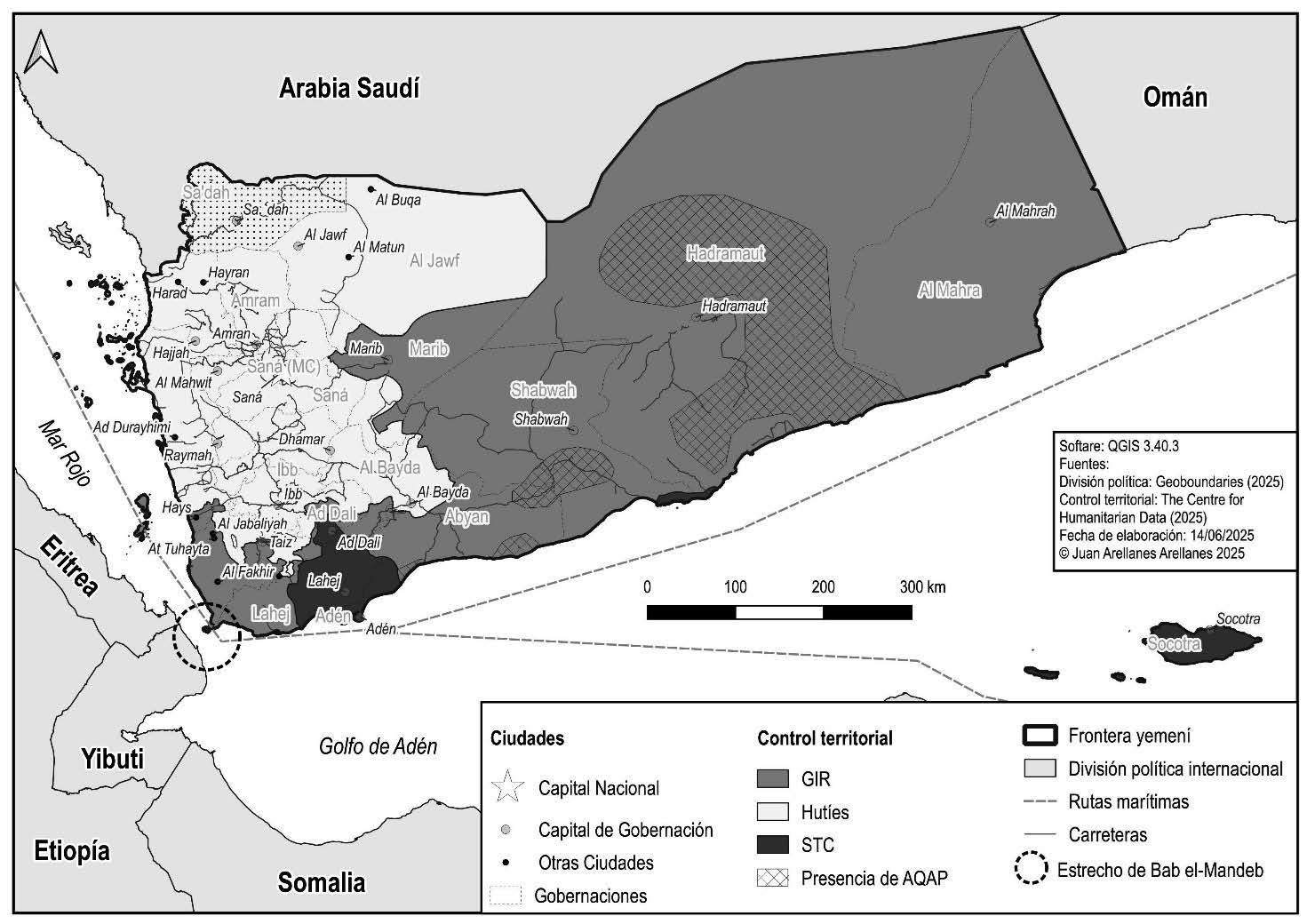 Mapa 1 Control territorial en Yemen a principios de 2025.