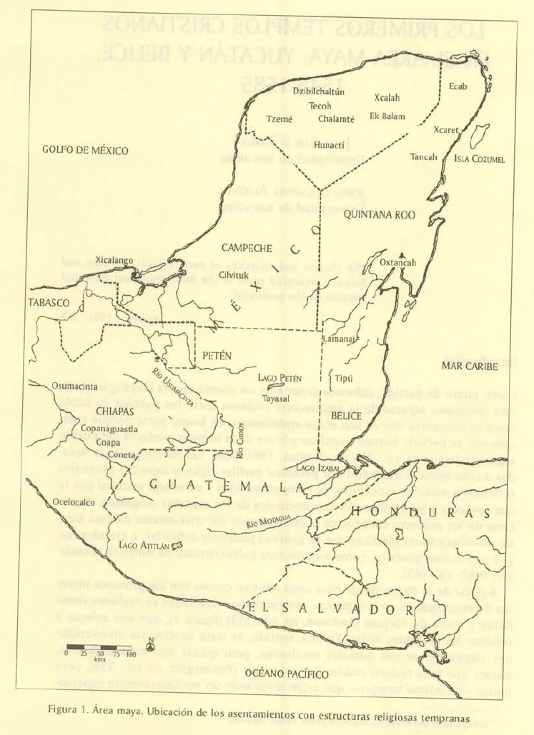Como punto de partida, debemos tener muy en cuenta que la investigación de este temprano aspecto de la arquitectura cristiana entre los pueblos de habla maya se encuentra aún en una etapa embrionaria, en buena parte porque coincide con un período bastante confuso y breve de la historia moderna del pueblo maya (Andrews, op. cit.: 356; Pendergast. 1991: 338). Las investigaciones llevadas a cabo hasta el momento nos permiten perfilar algunos aspectos puntuales referidos a modelos específicos de comportamiento y su reflejo material por lo que respecta a la planificación arquitectónica de los espacios religiosos. Al tratarse de los primeros esbozos de la implantación del cristianismo en esta área, las manifestaciones plásticas que se generan podemos definirlas, a grandes rasgos y de forma genérica, como arquitectura paleocristiana de América (Gussinyer, 1997: 143-163).