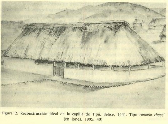 Se nombran iglesias al aire libre a pesar de que en etapas algo más avanzadas se les incorpora un espacio cubierto, una techumbre de guano sin muros laterales. En Ciudad Real leemos que en el convento de Tizimín, "[...] está hecha una ramada de madera, cubierta de guano que son hojas de ciertas palmas, muy grande, ancha y larga, capaz de mucha gente, con tal curiosidad que en toda ella no hay clavo ni soga, y con todo eso es fortísima; no tiene paredes, para que así esté desahogada y entre el aire por todas partes, sino unos horcones, postes o columnas de madera recísima, sobre la que está fundada [...]" (op cit., vol. II: 398).