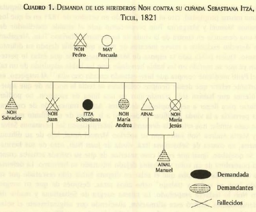 En efecto, el estudio de la transmisión entre generaciones del patrimonio material existente entre los mayas de la época colonial, revela que ésta era una forma mediante la cual los grupos parentales se integraban y reproducían, como una colectividad caracterizada por compartir un conjunto de derechos y obligaciones. De esta manera, la propiedad constituye un escenario privilegiado para analizar la práctica social y el papel que el parentesco desempeñaba en la construcción de configuraciones sociales que involucraban a los individuos en torno a intereses específicos. En este sentido, las relaciones de parentesco no son un tipo especial de relaciones sociales como las económicas o las políticas sino que conforman un modo de transmitir el estatus y la propiedad de una generación a otra, creando y manteniendo así grupos sociales efectivos.1