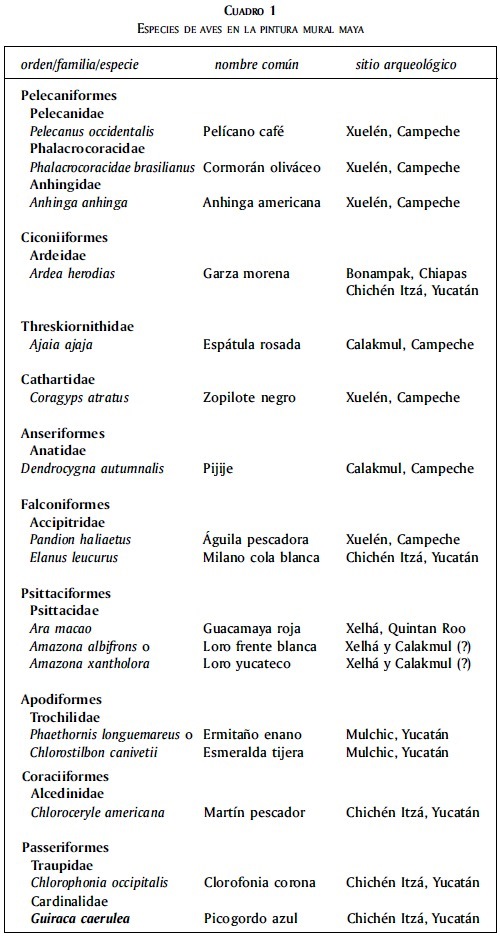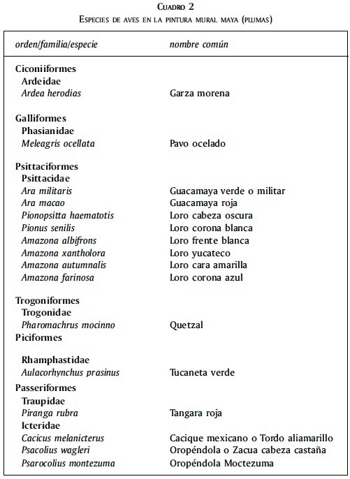 2 Los análisis ornitológicos pormenorizados de los murales han sido publicados en la obra La pintura mural prehispánica en México, coordinada por Beatriz de la Fuente, 1998 y 2001, excepto lo referente al sitio de Calakmul.