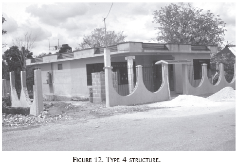 Type 4 structures are elaborate multi-room buildings, composed of cement block, losa or laminate roofing, painted and finished cement block walls, and cement and tile floors (figure 12). Their user groups consist of the families of those who work outside of the village either in major cities such as Ciudad del Carmen, Chetumal, or Campeche or further abroad. These individuals send remittances home, which are invested in housing. Information about this housing technology is acquired from individuals' experience in nearby cities. A number of residents are store owners, not agriculturalists, or they are the wives and children of men engaged in wage labor. The most elaborate structures in the village were still unoccupied at the time of this study.