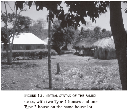 It is common for parents to give a structure to their married children. Renovations and new constructions that occur as part of the family cycle increasingly incorporate non-local materials and new housing variants, such as the type 2 block structures or type 3 structures (figure 13). Type 1 structures made of local materials, unmilled lumber and palm thatch are maintained or sometimes change function as the household proceeds through the family cycle. This spatial syntax is common to most agriculturalists, and it is not an ethnic marker. Tzeltal and Chol-speaking families follow the same family cycle and residence pattern as Yucatec families, and they follow the same processes in adopting new housing technologies.