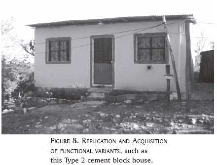 In Silvituc it is possible to identify the characteristics of user groups for technical housing variants. In trying to ascertain the characteristics of each variant's user group, we were guided by the questions Schiffer (2002: 1153) used in his analysis of technological differentiation. First, how and with whom did the technology originate? Second, to whom was the technology transferred? Third, what groups make up the recipient communities? Fourth, how was the technology redesigned to fit the purposes of the user group? Fifth, what new functional variants of the technology arose and what characteristics were emphasized? Finally, how did people replicate and acquire examples of the redesigned technology? Here we examine the emergence and persistence of four house variants and the characteristics of their user groups (table 2).