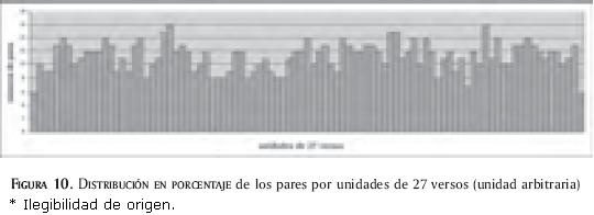 18 Para una descripción más detallada y ejemplificada, remitimos al lector a la tesis de Hull (2003). Su tipología es muy a menudo similar a la que presentamos aquí. Pares, tripletes, cuadrupletes, quiasmos, elipsis refieren a las mismas formas. Monocolon es equivalente a nuestros "versos aislados" y llamamos "expansión" lo que describe como "augmentative parallelism". Las figuras que define como "nesting", "envelopping" y "embedding" forman parte de niveles superiores que consideramos como organizadores del texto más que como disposición de los elementos en paralelo. Por último, analizamos aquí el "couplet marking" desde el punto de vista de la frecuencia y no de la semántica.