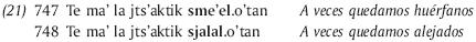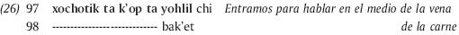 16 Las traducciones entre corchetes son más o menos literales mientras que la primera es la que fue dada por los tzeltales.