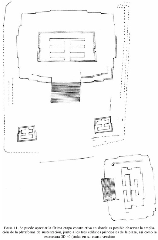 Este es el periodo de mayor auge constructivo en toda la plaza: se levantan los parapetos del extremo sur de la plaza, se amplían la gradas de acceso a la plataforma de la estructura 43-4, se construyen los edificios de la Plaza B, y se adecua la última versión de la Estructura 40-4, la cual se va ampliando al igual que su vecina 3D-43 (figura 11).