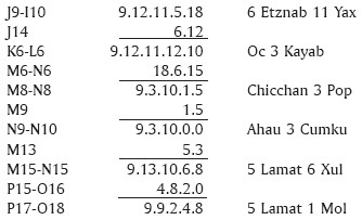 2. Parte derecha, secuencia de gobernadores históricos de Palenque hasta 9.7.0.0.0 más o menos.