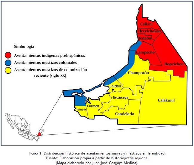 En este sentido, el sur del estado constituye un territorio de colonización relativamente reciente, a diferencia de la vieja zona norte habitada incluso desde antes de la llegada de los españoles por población indígena maya, así como de la franja costera, donde surgieron algunos poblados mestizos coloniales. Los procesos de formación de poblados y el cambio hacia las actividades agropecuarias en el sur de Campeche han formado parte de disímiles procesos de ocupación y poblamiento del territorio que han vinculado a grupos de la zona con variados grupos de lugares más allá de las fronteras de la entidad, e incluso del país. A diferencia del norte y otras regiones de México donde las políticas de colonización iniciaron desde la consumación de la independencia en el siglo XIX (Aboites Aguilar, 1997: 35-37), junto con las selvas de Quintana Roo, las de Campeche han sido uno de los últimos reductos de colonización, en el siglo XX, en la frontera sur y el sureste del país.