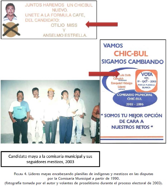 Pero a partir de la última década mencionada se inició un nuevo periodo de cambios y continuidades. Con la intensificación de las luchas partidistas y la influencia económica y política creciente del ayuntamiento en las comunidades de su circunscripción, la comisaría municipal reemplazó al ejido como institución de gobierno local preminente, y las luchas por su control establecieron las identidades políticas partidistas como las más relevantes entre los grupos. No obstante, las distinciones étnicas entre mayas y mestizos siguieron permeando los procesos de formación de grupalidades, aunque sin promover la construcción de grupos y divisiones políticas a partir de ellas.