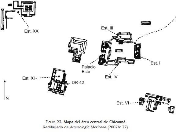 Michelet, Dominique y Philippe Nondédéo 2007 "Operación VA: Estructura principal del grupo A. Proyecto Río Bec (Campeche, México). Informe de la quinta temporada del 5 de febrero al 4 de mayo de 2006", pp. 73-94, Dominique Michelet et al. (eds.). París y México: Centre National de la Recherche Scientifique, Laboratoire "Archéologie des Amériques" (UMR 8096) y Centro de Estudios Mexicanos y Centroamericanos. Inédito. [ Links ]