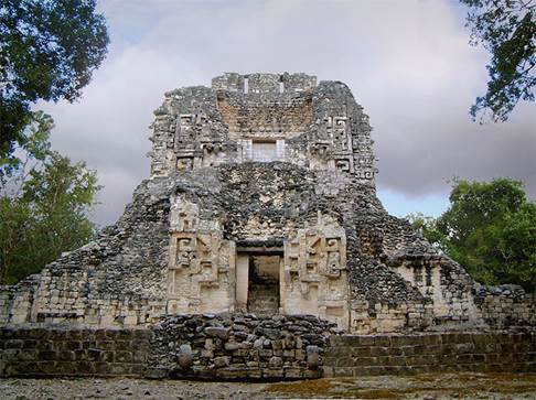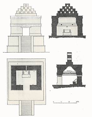 Figura 13 Edzná. Lado este de la crestería del Edificio de los Cinco Pisos