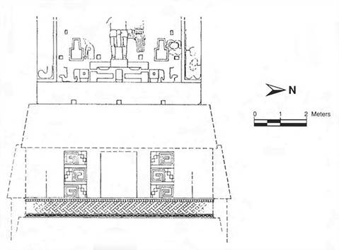 Figura 11 Reconstrucción parcial de la crestería de la Estructura II de Hochob, MNA