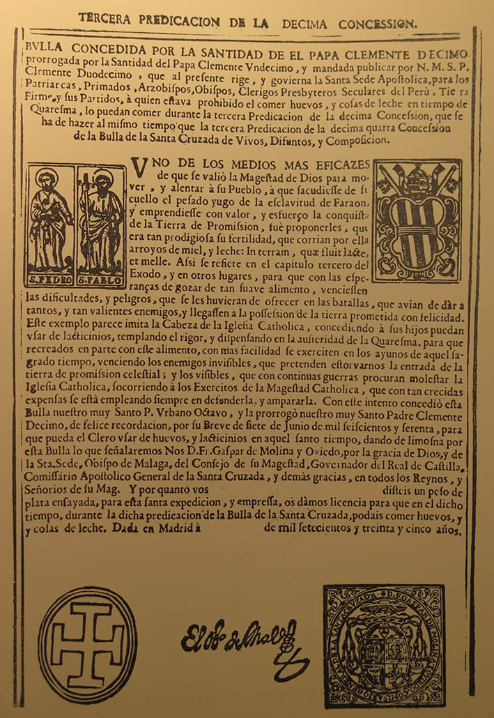 Figura 3 Bula de la Santa Cruzada, impresa en Madrid en 1735, para distribución en Perú (Vindel, 1930: 367).