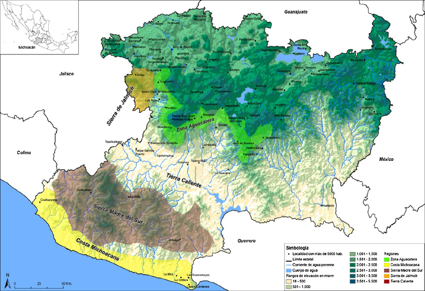 No deja de sorprender que la Tierra Caliente de Michoacán (también conocida como el valle de Apatzingán6), pese a su complejidad e importancia, aún no haya llamado mucho la atención de los historiadores del siglo XX.7 Considero que la ola de violencia que en años recientes ha vivido la región no puede comprenderse sin un análisis de los factores que la han detonado en el pasado (fig. 1).