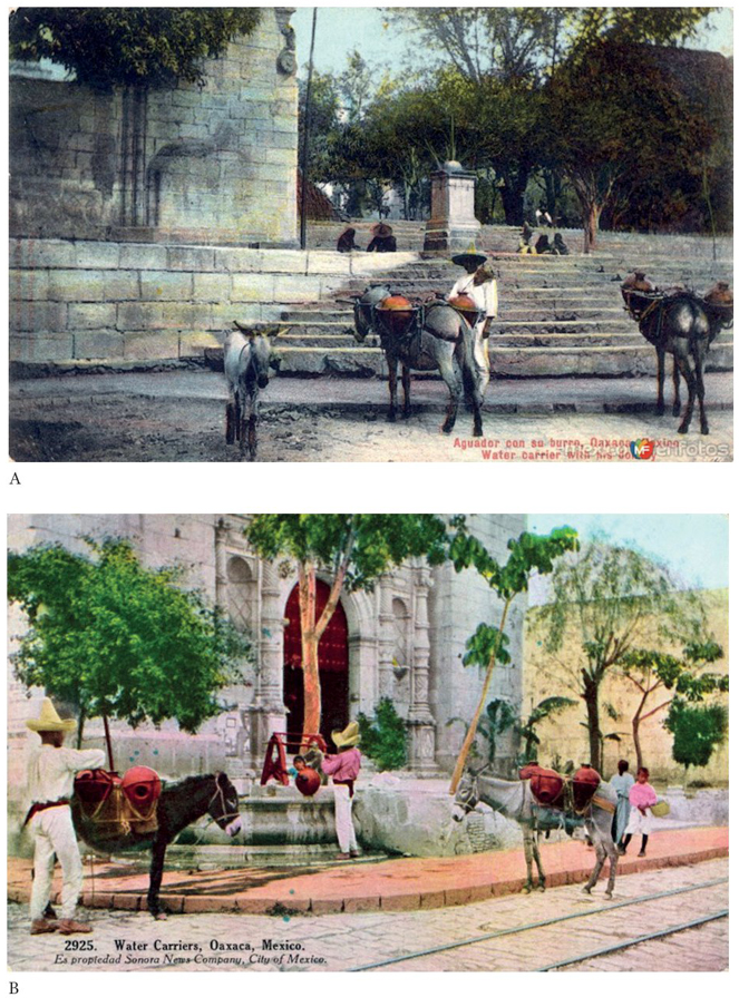 Por otro lado, en la historiografía local, aunque muy generales, se pueden encontrar referencias en la obra de Mark Overmyer-Velázquez, Visiones de la ciudad esmeralda. Modernidad, tradición y formación de la Oaxaca porfiriana;10 y en la de Édgar Mendoza, “Abastecimiento de agua potable e higiene pública en la ciudad de Oaxaca, 1867-1915”.11 Si bien esos acercamientos son importantes, hay información y análisis que los autores pasaron por alto y que en el presente trabajo se abordan.12 La presencia del aguador en la ciudad de Oaxaca se asemeja a la de sus congéneres de otras ciudades mexicanas, y esos paralelismos evidencian que el gremio estuvo normado y percibido bajo los mismos preceptos a lo largo y ancho del país.