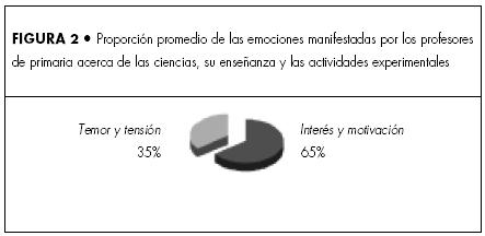 Con referencia a la dimensión afectiva de la actitud encontramos (figura 2) que una buena parte de los profesores manifestaron interés (66%) y motivación (63%) por las CN, su enseñanza y las actividades experimentales; empero, de manera simultánea les producían temor (37%) y tensión (34%), probablemente como los maestros lo manifestaron por la dificultad que les representa todo lo relacionado con las ciencias.