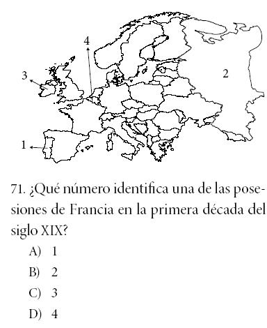 Nuestra siguiente pregunta es la número 71. Antes de ella también se presenta un mapa que el alumno debe observar para responderla.