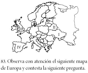 El siguiente reactivo que presentaremos es el número 82. En él se pide una vez más observar un mapa de Europa para luego responder la pregunta.