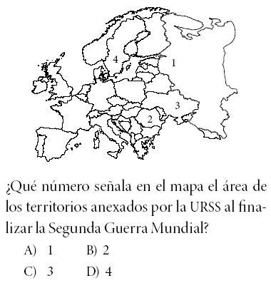 Como podemos observar, también en este caso la "división política de Europa" resulta imprecisa en términos temporales, y por tanto históricos. Además de ello la pregunta de nueva cuenta alude de forma exclusiva a una memorización que obvia procesos históricosociales y remite al estudiante a una visión inmovilista de la transformación del espacio histórico.