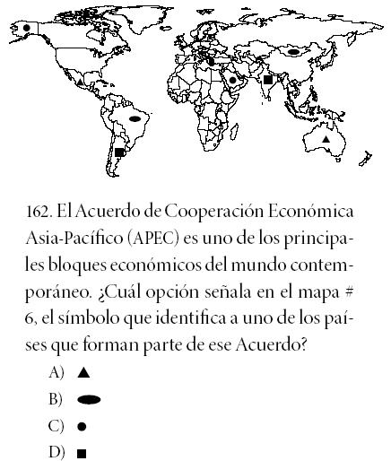 Como se puede observar, este mapa sí coincide con el momento histórico del que habla la pregunta: el actual. Sin embargo, cabe preguntarse realmente qué trata de evaluar este reactivo: ¿la capacidad de de los alumnos de memorizar una zona determnada? ¿Para qué? ¿Qué relación guarda esto con los contenidos y el enfoque de historia de segundo grado de secundaria? Es decir, ¿este tipo de pregunta realmente evalúa el nivel de logro de los alumnos de segundo grado de secundaria en la asignatura de historia?