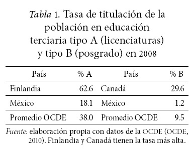 Profundizando en la educación superior, la mirada a la titulación nacional de los egresados de este nivel proporciona también una característica que expresa el grado de desafío que implica reducir las distancias de la tasas de titulación, sobre todo al compararlas con las de otros países como los que integran la Organización para la Cooperación y el Desarrollo Económico (OCDE) (Tabla 1).