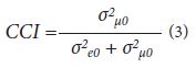 Donde σ2μ0 corresponde a la varianza del factor, y σ2e0 corresponde a la varianza de los residuos.