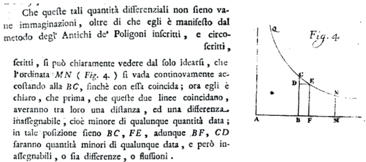 María Gaetana Agnesi, además de filósofa, al estudiar las matemáticas enfrentó el problema más difícil de su época: el cálculo infinitesimal, que había sido introducido de forma independiente por Leibniz en 1684 y Newton en 1687, y que evolucionó en dos líneas diferentes, en medio de un acalorado debate (Sesti, 2020). Su trabajo recibió elogios en toda Europa, especialmente por la precisión del lenguaje y la claridad de la exposición (Betti y De Tullio, 2018). Con respecto a la noción de diferencial, ella expresa lo siguiente:3
