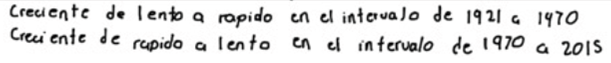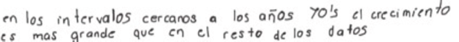 Un argumento similar al de Agnesi sobre la propiedad infinitesimal es el que presenta Zyania en el caso B, cuando explica cómo se obtiene el mayor valor para dy. Ella observa que el crecimiento más grande se obtiene en datos cercanos a la década de los setenta.