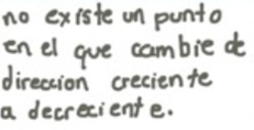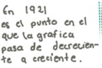 En la última pregunta de la situación se les dio una gráfica de una función f ’ respecto de la cual se les solicitaba determinar los valores de para los cuales la gráfica de la función f presenta máximos, mínimos o puntos de inflexión. Si bien las estudiantes dieron las respuestas, en éstas se determinan los máximos, mínimos y puntos de inflexión de la función f ’. Los motivos de estas respuestas pueden ser diferentes, desde el cansancio hasta la comprensión y relación de la gráfica de f ’ con respecto a f .