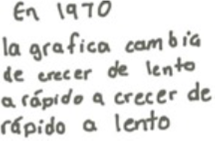 En este estudio, particularmente en el crecimiento poblacional, se utilizaron datos discretos y esto no fue impedimento para la comprensión conceptual del punto de inflexión y del mínimo local en funciones de variable real; es más, aportó al estudio cualitativo del cambio que apoya a los argumentos variacionales para el estudio de las gráficas de funciones continuas de variable real. Además, la forma en como es presentada la gráfica en el crecimiento poblacional contribuyó a que las estudiantes hicieran comparaciones cualitativas de los datos (sin conocer el número) y dar estimaciones del comportamiento local entre cada década.