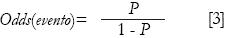Lo interesante del modelo logístico es que permite evaluar cómo un cambio en una variable determinada aumenta o disminuye la probabilidad de que un evento ocurra. Dado que las probabilidades tienen un rango restringido entre 0 y 1, se usan los odds4 que corresponden al cuociente entre la probabilidad de que algo ocurra y que no ocurra, como se muestra en la siguiente fórmula [3].