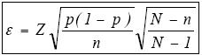 Tomando en consideración los datos previos y utilizando el cálculo de tamaño de muestra en la fórmula para proporciones, la precisión de los resultados estaría dada por la siguiente expresión: