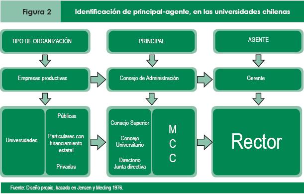 En el caso de las universidades en Chile, ese rol lo deben asumir sus juntas directivas, directorios o consejos superiores que para esta investigación denominaremos máximos cuerpos colegiados (MCC). Esta la razón primordial por la cual los basamentos teóricos se encuentran en los antecedentes existentes respectos de los Consejos de Administración. Los CA deben constituirse en organismos de inspección y supervisión, siendo además factores homeostáticos entre los diferentes colectivos que son habitualmente parte de la empresa. Como característica distintiva está el hecho de que los CA delegan en los directivos la gestión y administración de la empresa, reteniendo derechos de selección y remuneración de directivos y la dirección estratégica de la entidad (Fama y Jensen, 1983).