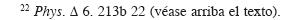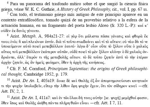 de las categorías fundamentales de la ciencia que se ocupa de la naturaleza (es decir, la 'física'), donde destaca que la especulación acerca de es común a la mayor parte de los presocráticos, quienes identificaron en éste el origen del todo.56 Un poco más adelante, el Estagirita se refiere con mayor precisión a dicha concepción presocrática de la