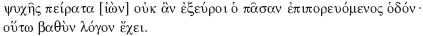 Aquél que recorre todos los caminos no podría descubrir [a medida que avanza] los límites del alma, pues ésta posee un logos tan profundo.64