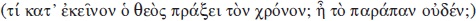 . Pero lo que es importante enfatizar es que dios no es diferente del mundo ni del fuego en sus diferentes fases. En Aet., § 83, Filón sigue insistiendo en las dificultades que involucra postular una conflagración cósmica y, un poco retóricamente, se pregunta "¿qué estará haciendo dios durante ese tiempo? ¿Nada en absoluto?"