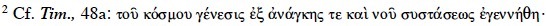 de lo forjado por medio de la inteligencia, demostración a la que sumará ahora la que corresponde a la tarea de la anánkē, sin la cual la exposición de la génesis del universo sería insuficiente.